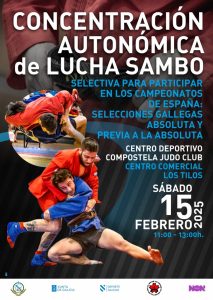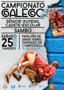 Os Campionatos de España de Sambo convocan a concentración previa obrigatoria para todos os medallistas galegos o 15 de febreiro de 2025, das 11:00 ás 13:00, no Centro Deportivo Compostela Judo Club (Centro Comercial Los Tilos, Teo), cunha especial prioridade para os campións.