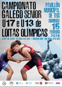 CAMPIONATO GALEGO U13, U17 e SÉNIOR de Loitas Olímpicas que terá lugar o domingo día 15 de Febreiro do 2026, no Pavillón Municipal de Teis