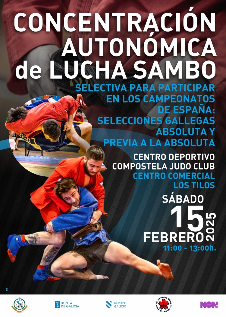 O sábado 25 de xaneiro, no Pavillón Santa Isabel de Santiago de Compostela, terase o Campeonato Galego de Sambo, unha cita clasificatoria cara aos Campionatos de España. As inscricións defínitivas dos equipos finalizan o mércores 22 de xaneiro ás 12:00. Controlo de peso, competición (das 16:30 ás 19:30) e entrega de medallas (das 19:30 ás 20:00) completan o programa, que se adaptará a 3 ou 4 tapices segundo as inscricións.