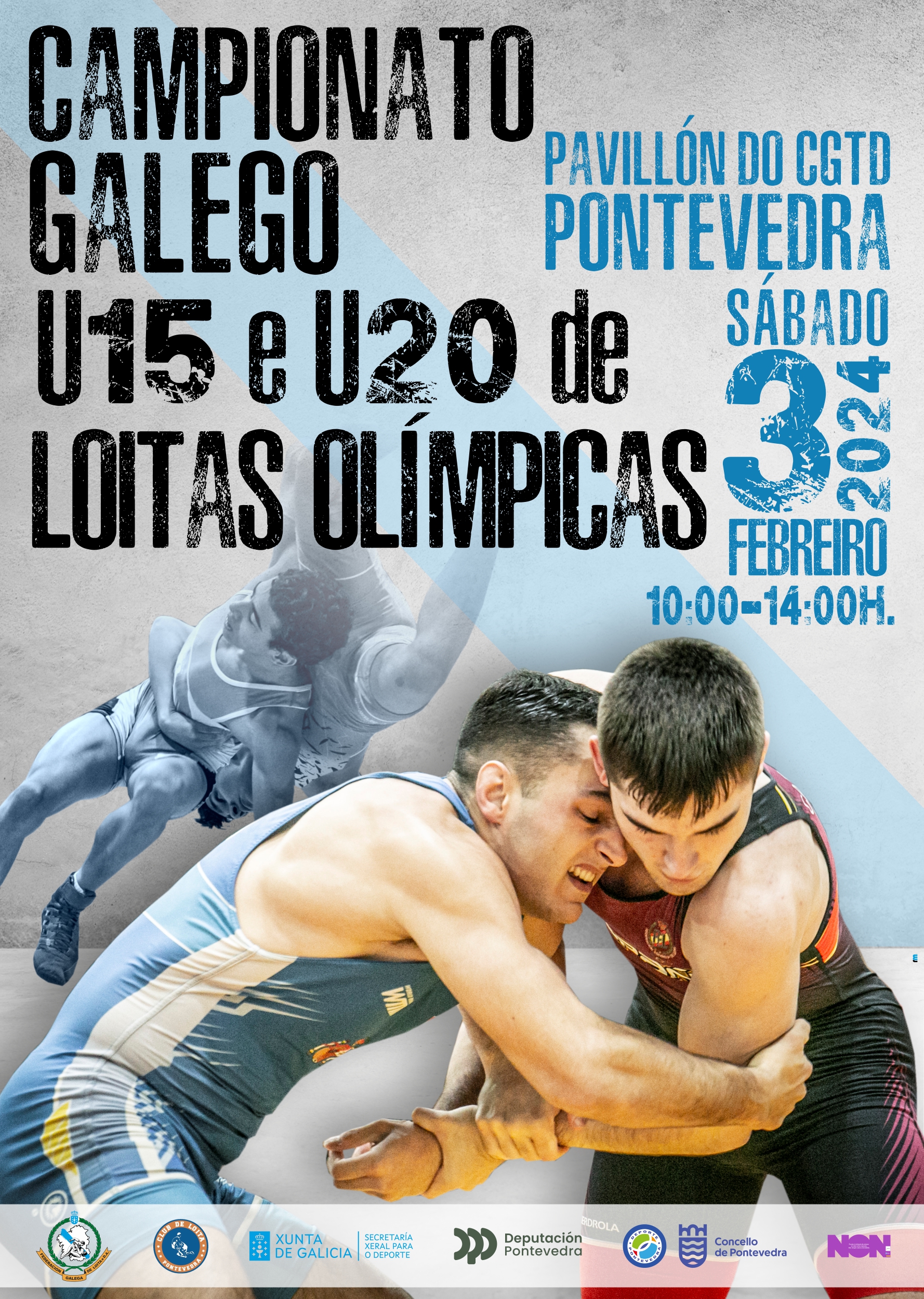 Información sobre o CAMPIONATO GALEGO JÚNIOR (U20) e ESCOLAR (U15) de Loitas Olímpicas que terá lugar o día 3 de Febreiro do 2024, no CGTD de Pontevedra (Pontevedra).
