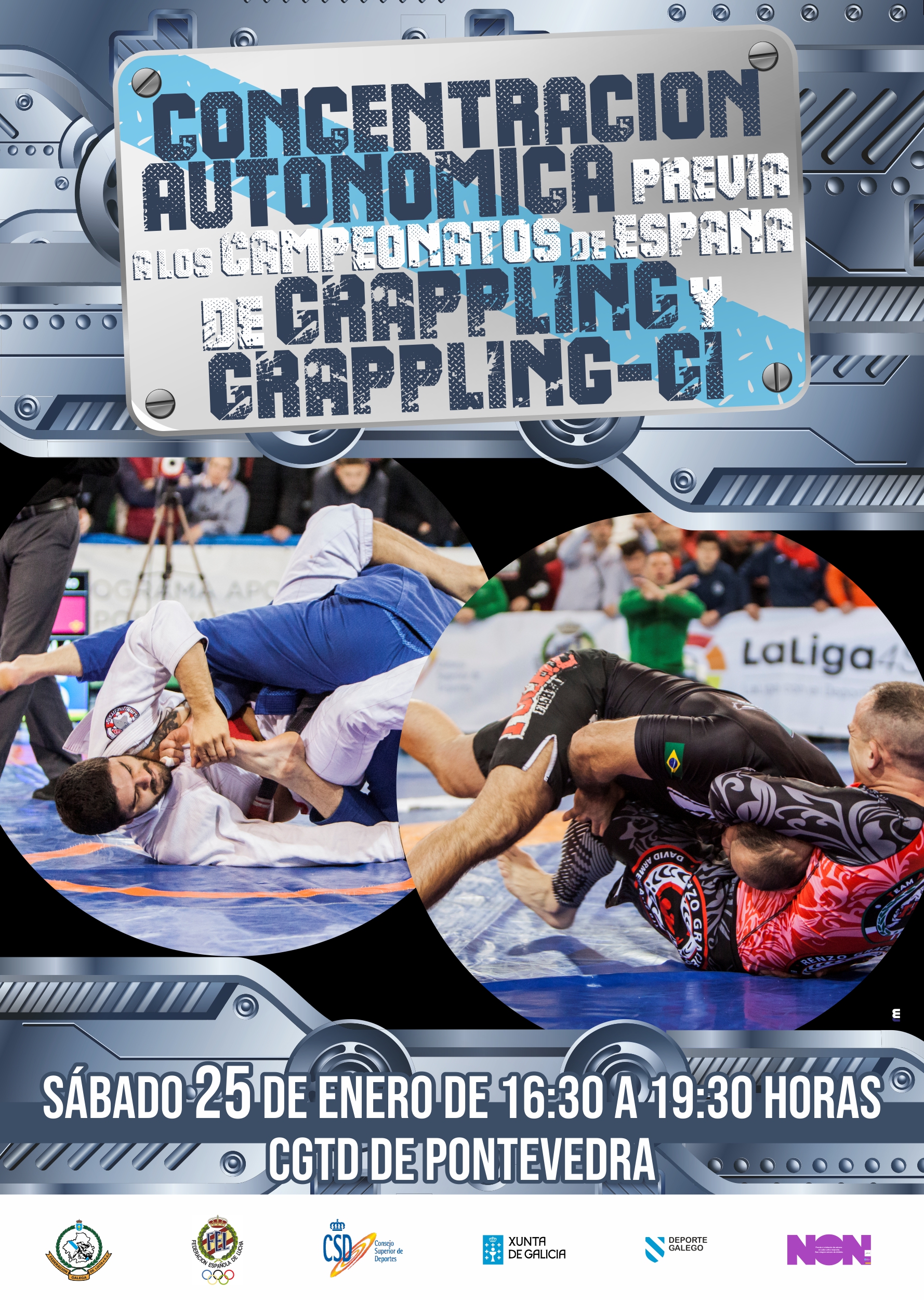 CONCENTRACIÓN AUTONÓMICA DE LOITA GRAPPLING e GRAPPLING-GI, que terá lugar o sábado 25 de Xaneiro na SALA DE LOITA das instalacións do CGTD de Pontevedra, en xornada de tarde, de 16:30 a 19:30 horas.