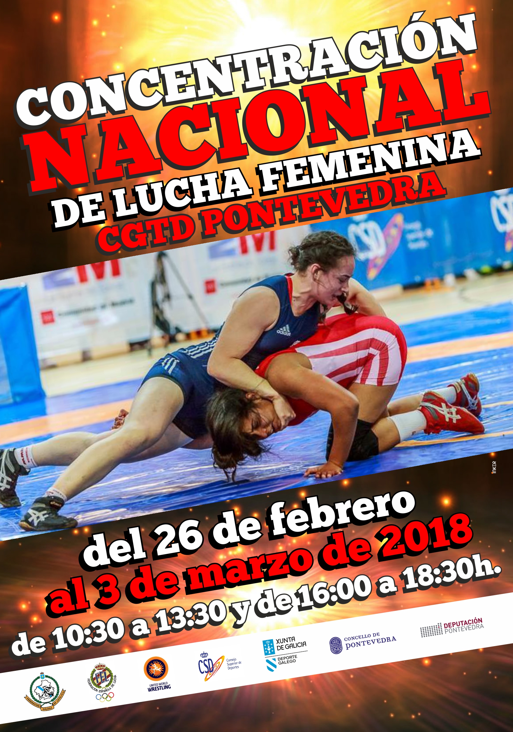 La Selección Nacional Femenina absoluta de Luchas Olimpicas, permanecerá concentrada del 26 de Febrero hasta el 3 de Marzo en la ciudad de Pontevedra, entrenando en doble sesión diaria en las instalaciones del CGTD.