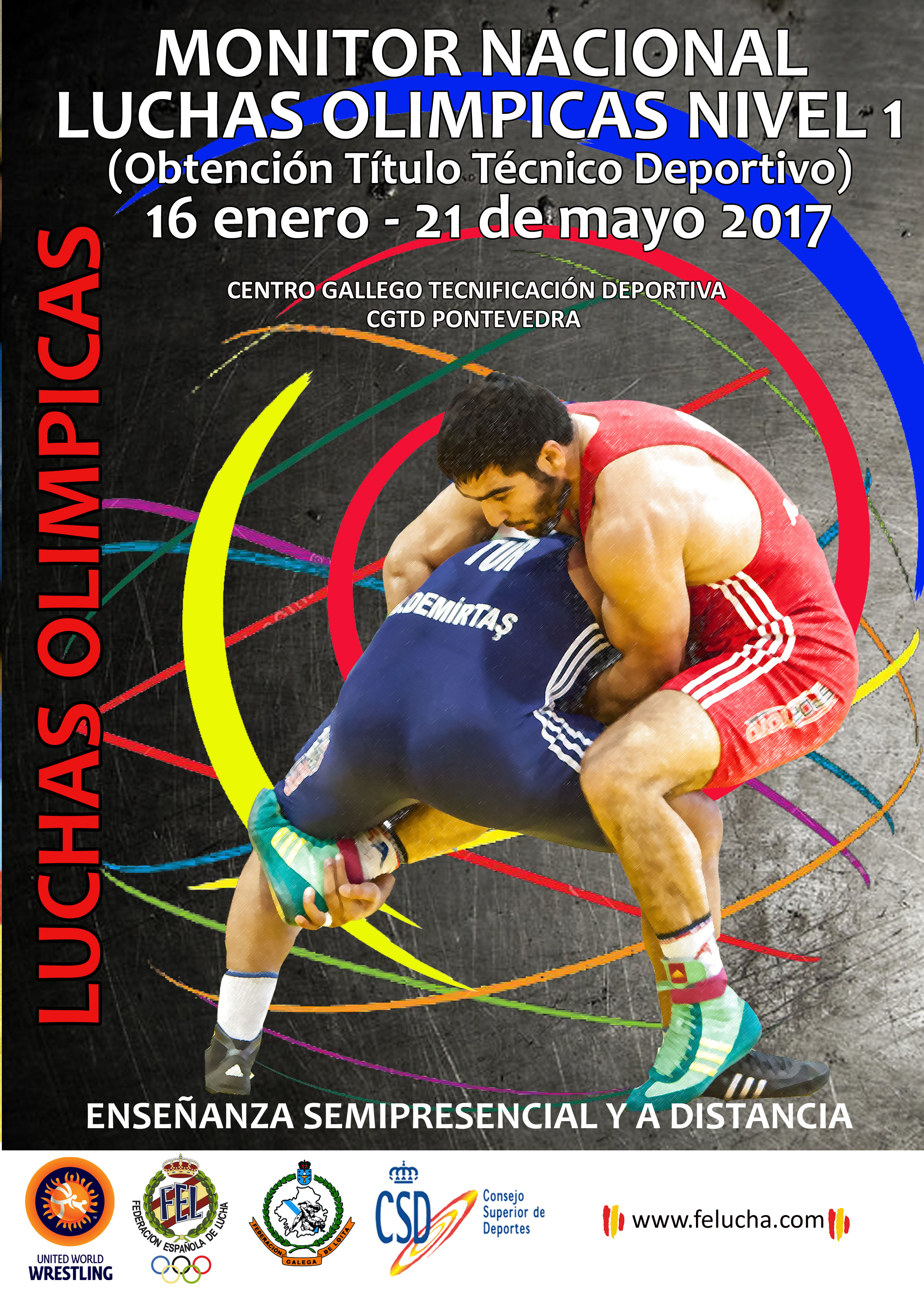 Presentamos o primeiro e único curso oficial para a obtención do título de MONITOR NACIONAL DE LOITAS OLÍMPICAS NIVEL 1 no 2017, e a obtención do título de TÉCNICO DEPORTIVO. Ensinanza oficial, tramitada en colaboración co CESED (Centro Superior de Enseñanzas Deportivas) centro de titularidade pública dependente do CSD, a Federación Española de Luchas Olímpicas y D.A. e a Federación Galega de Loitas Olímpicas de D.A.