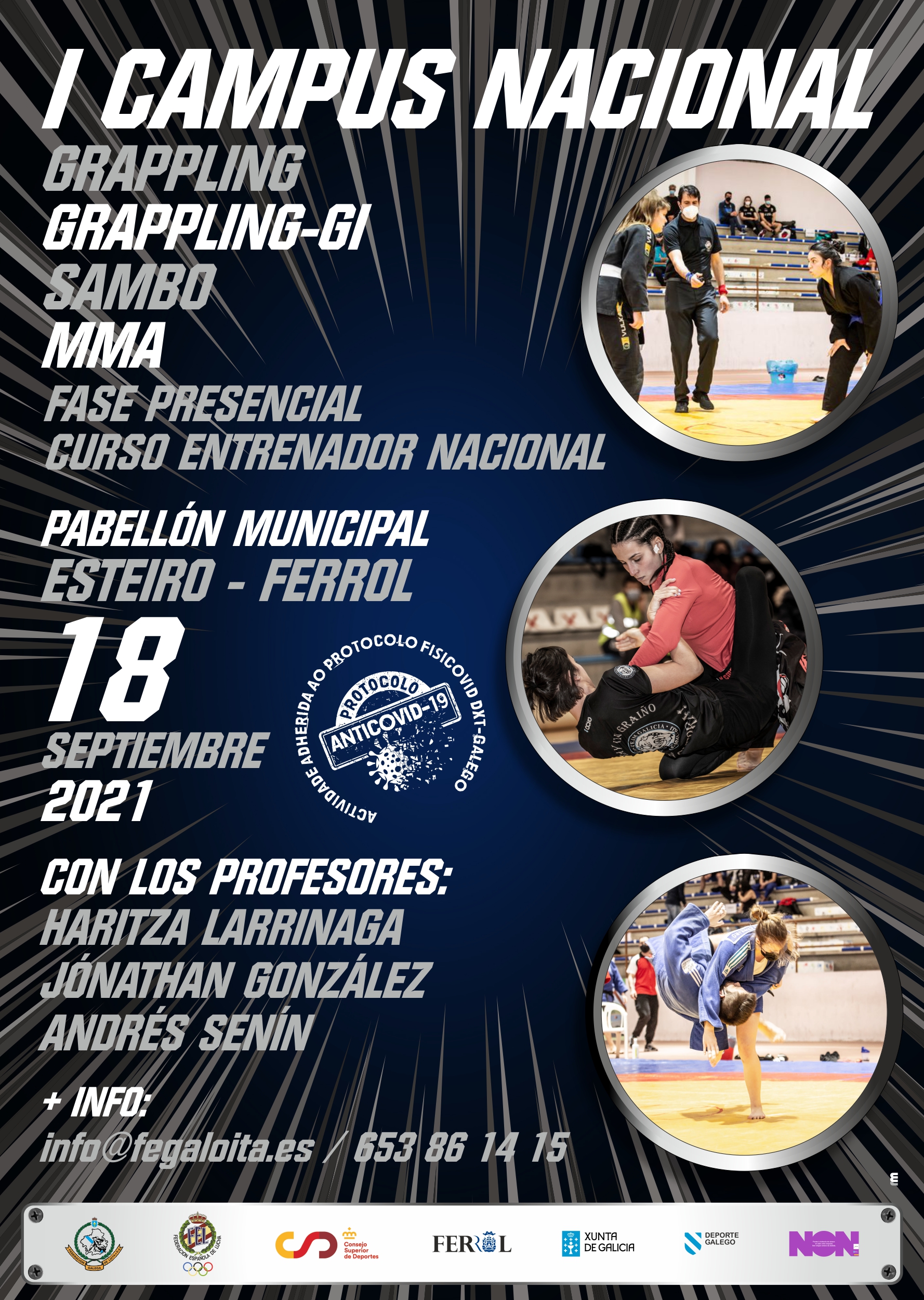I CAMPUS NACIONAL DE GRAPPLING, GRAPPLING-GI, SAMBO Y MMA, que tendrá lugar en el pabellón de Esteiro de Ferrol el 18 de Septiembre de 2021.